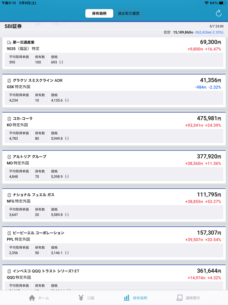 なので、43juni自体は個別銘柄(日本株&米国株)を管理するためのツールとして使うのが良いと思います。損益&受領配当の管理という観点から見たら、無料アプリですし十分なクオリティだと思います。